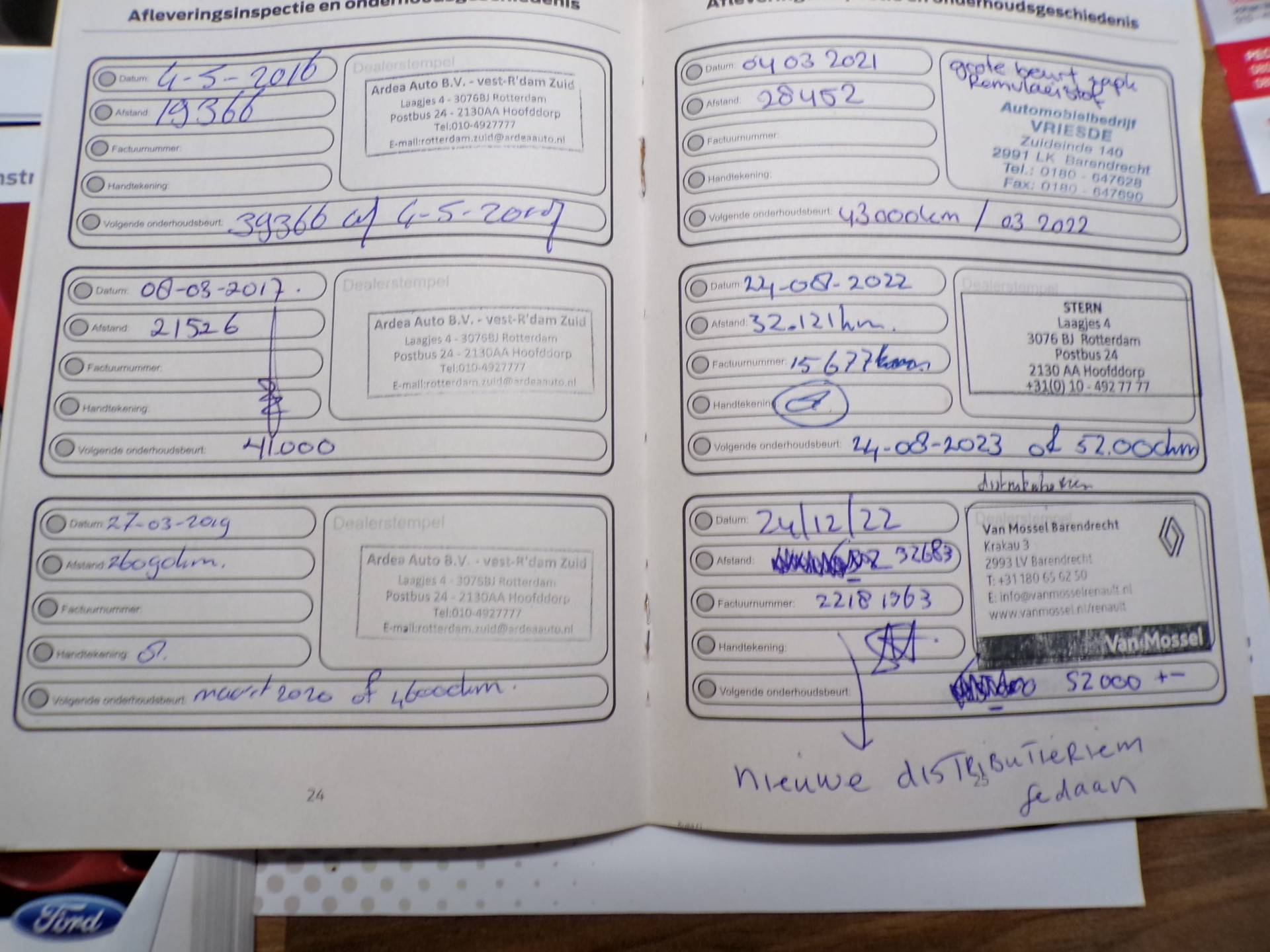DE DISTRIBUTIERIEM IS VERVANGEN BIJ 32.683 KM 24-12-2022 BIJ VAN MOSSEL BARENDRECHT....
