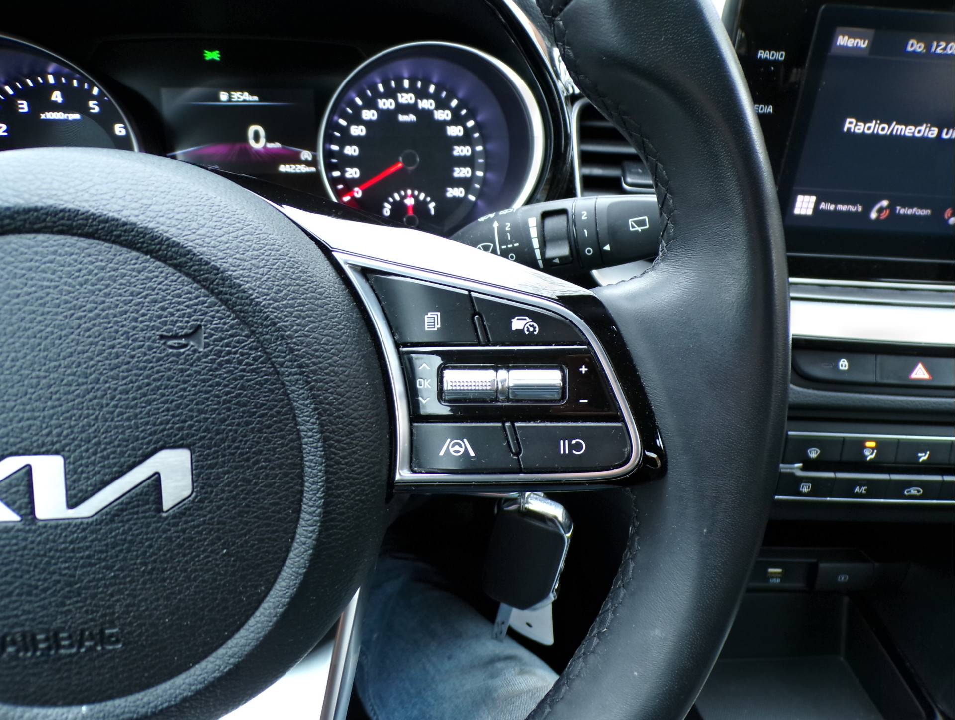 Comfortabel en veilig achteruitrijden gaat gemakkelijker dan ooit met behulp van de achteruitrijcamera. Als u regelmatig met een aanhanger of een fietsendrager op pad bent, is de afneembare trekhaak een praktische extra. In deze Ceed Sportswagon vindt u niet alleen schakelaars op het stuur om het audiosysteem met DAB-ontvangst te bedienen, maar er is ook spraakbediening. Het comfort wordt verhoogd door de aanwezige electronic climate control. Op een rustige weg komt de cruise control helemaal tot z'n recht. De uitrusting van deze Kia is met lederen stuur, centrale deurvergrendeling met afstandsbediening en lederen versnellingspook behoorlijk compleet.