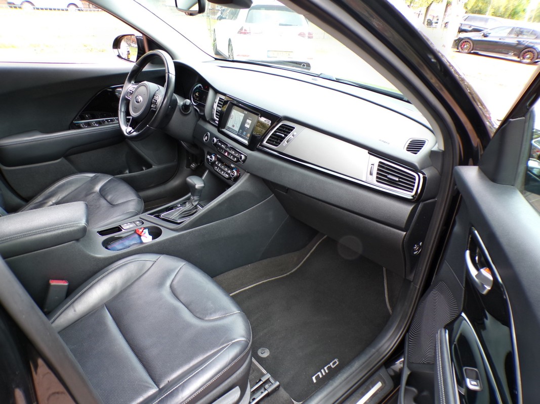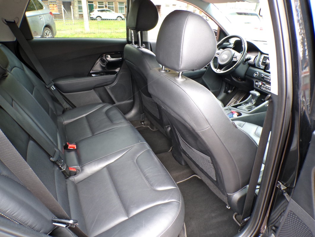 De Kia Niro is ontworpen als een alleskunner waarmee u zowel in de stad als in de buitengebieden uit de voeten kunt. In deze auto vindt u een benzinemotor en een automatische transmissie. Met zijn lederen bekleding is deze Kia comfortabel en stijlvol. Lekker hoor, die verwarmbare voorstoelen. Helemaal op koude dagen. Dankzij de xenonverlichting profiteert u in het donker van een krachtige en heldere lichtbundel. Ook 18 inch lichtmetalen velgen, donker getint glas achter, in delen neerklapbare achterbank en LED-achterlichten zijn aan boord.