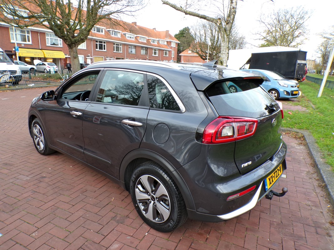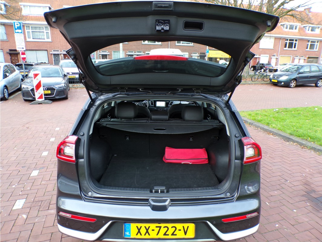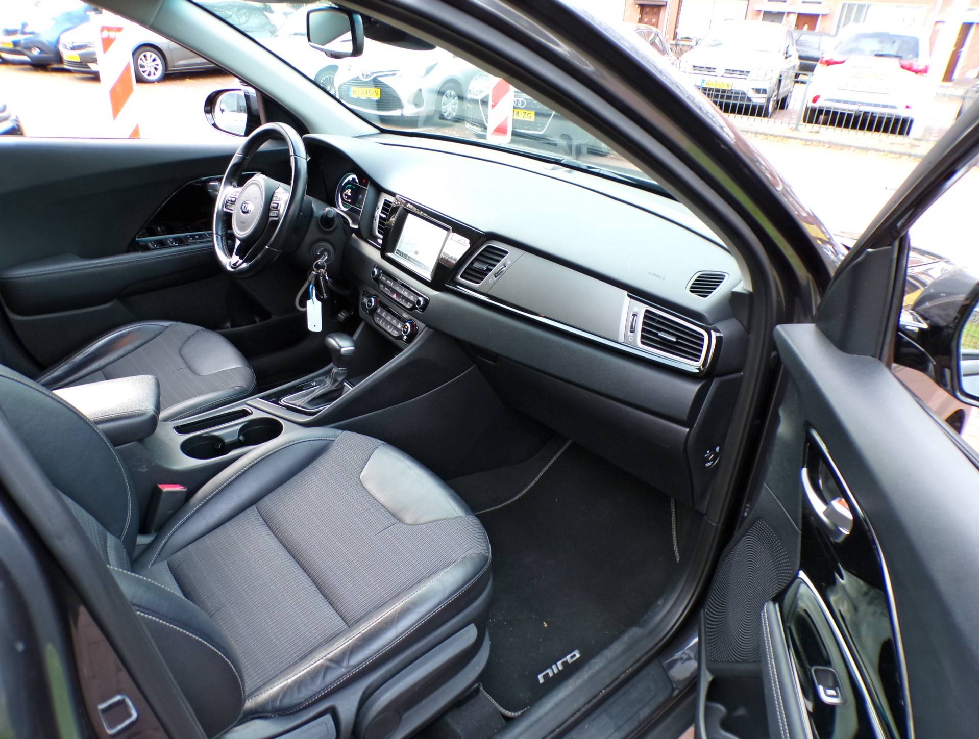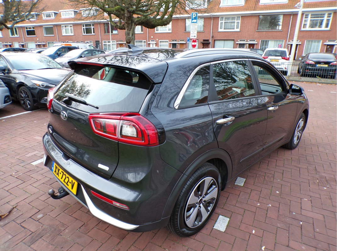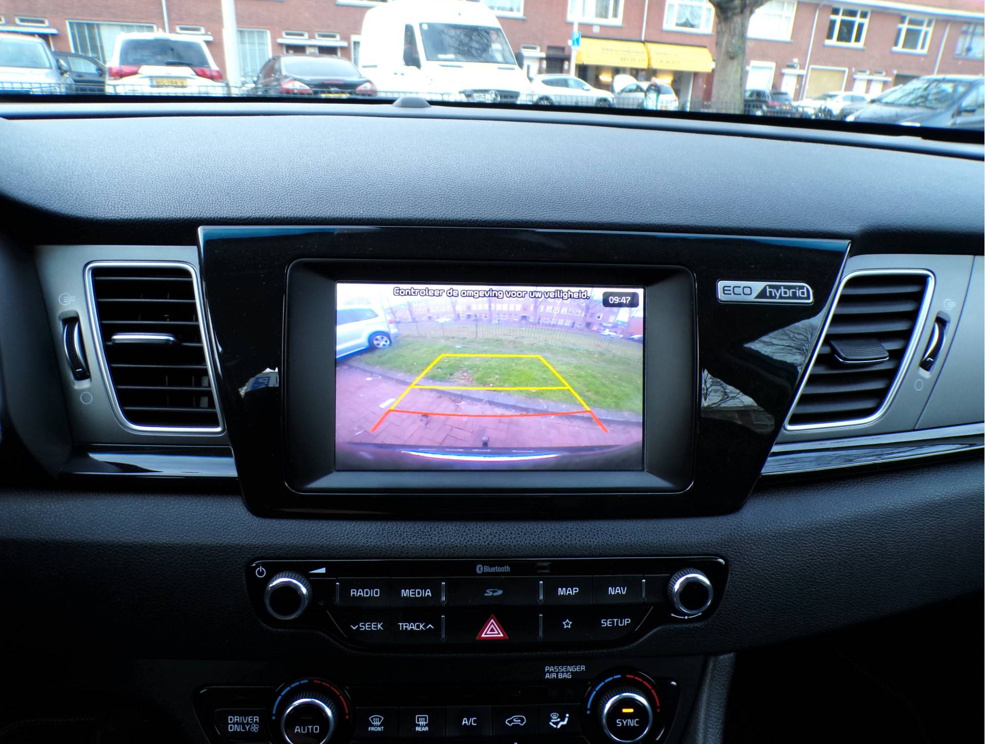 Overzichtelijk en veilig parkeren met de achteruitrijcamera. Overal en altijd. Als u regelmatig met een aanhanger of een fietsendrager op pad bent, is de afneembare trekhaak een praktische extra. In deze Niro vindt u schakelaars op het stuur om het full map navigatiesysteem te bedienen en het audiosysteem met DAB-ontvangst. De electronic climate control zorgt voor een prettige binnentemperatuur. In deze Kia kunt u zich concentreren op het verkeer, terwijl de auto de omgeving voor u in de gaten houdt. Een automatisch inschakelbare verlichting zorgt dat de verlichting aangaat als het donkerder wordt - in tunnels bijvoorbeeld - en de regensensor schakelt de ruitenwissers in als het nodig is. U hoeft er niets aan te doen. En dan is deze auto ook nog eens voorzien van cruise control, automatisch dimmende binnenspiegel, isofix-aansluiting, centrale deurvergrendeling met afstandsbediening en verstelbaar stuur.