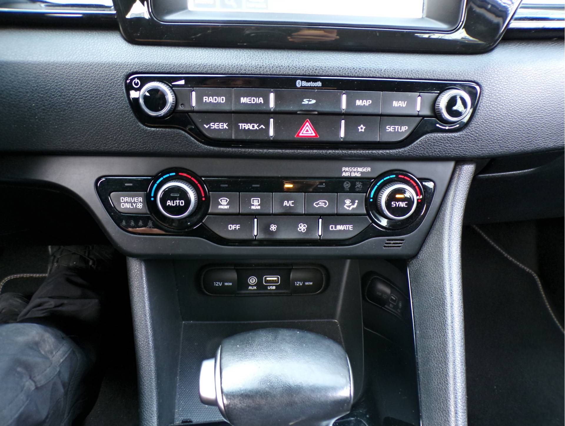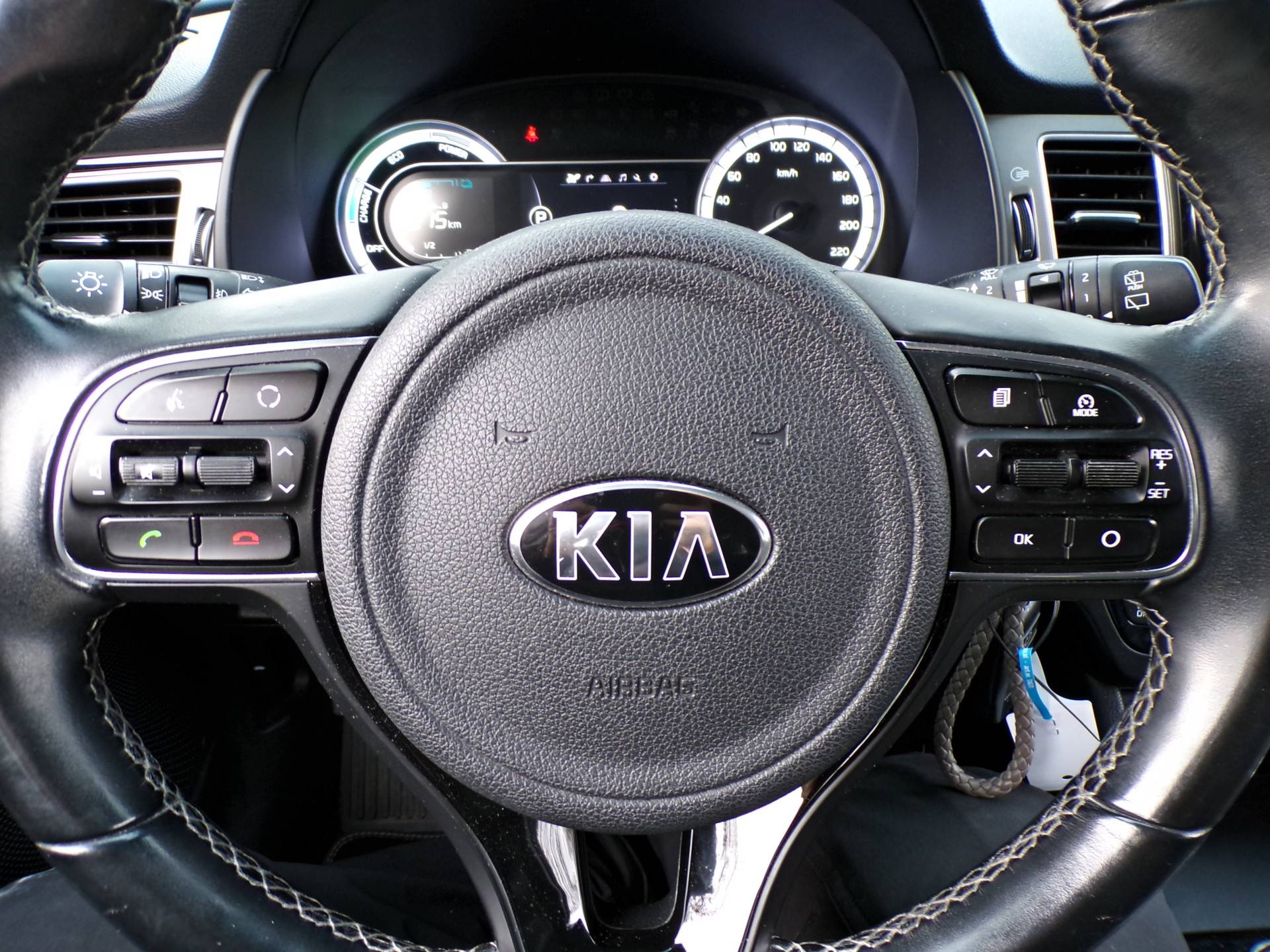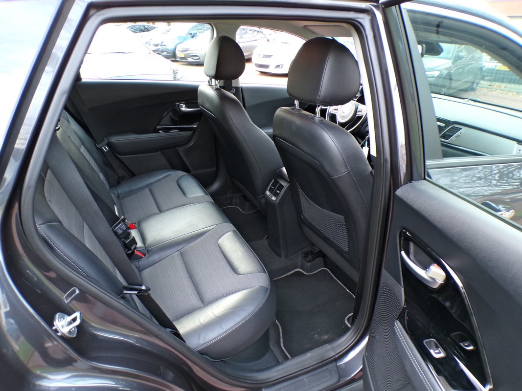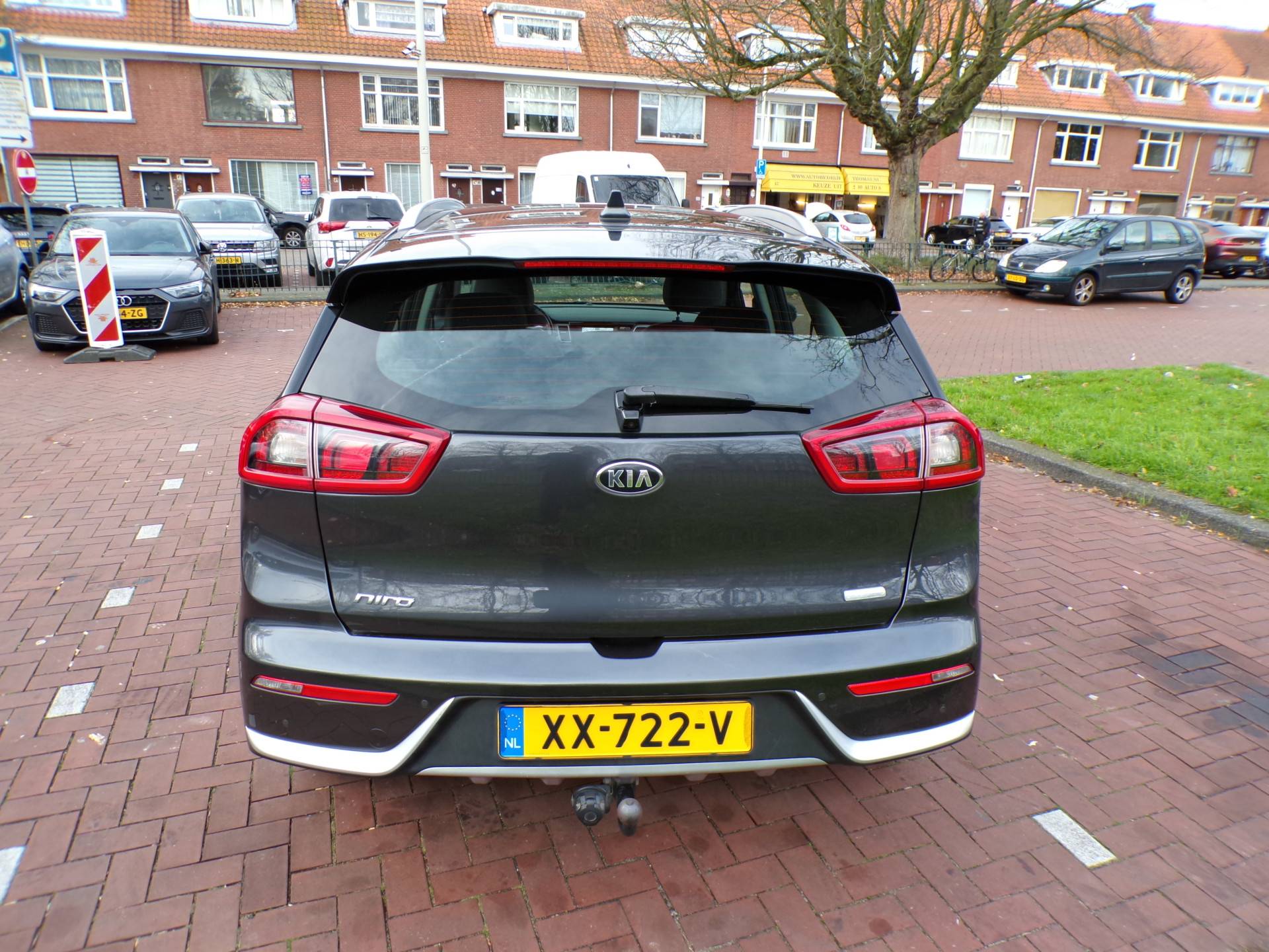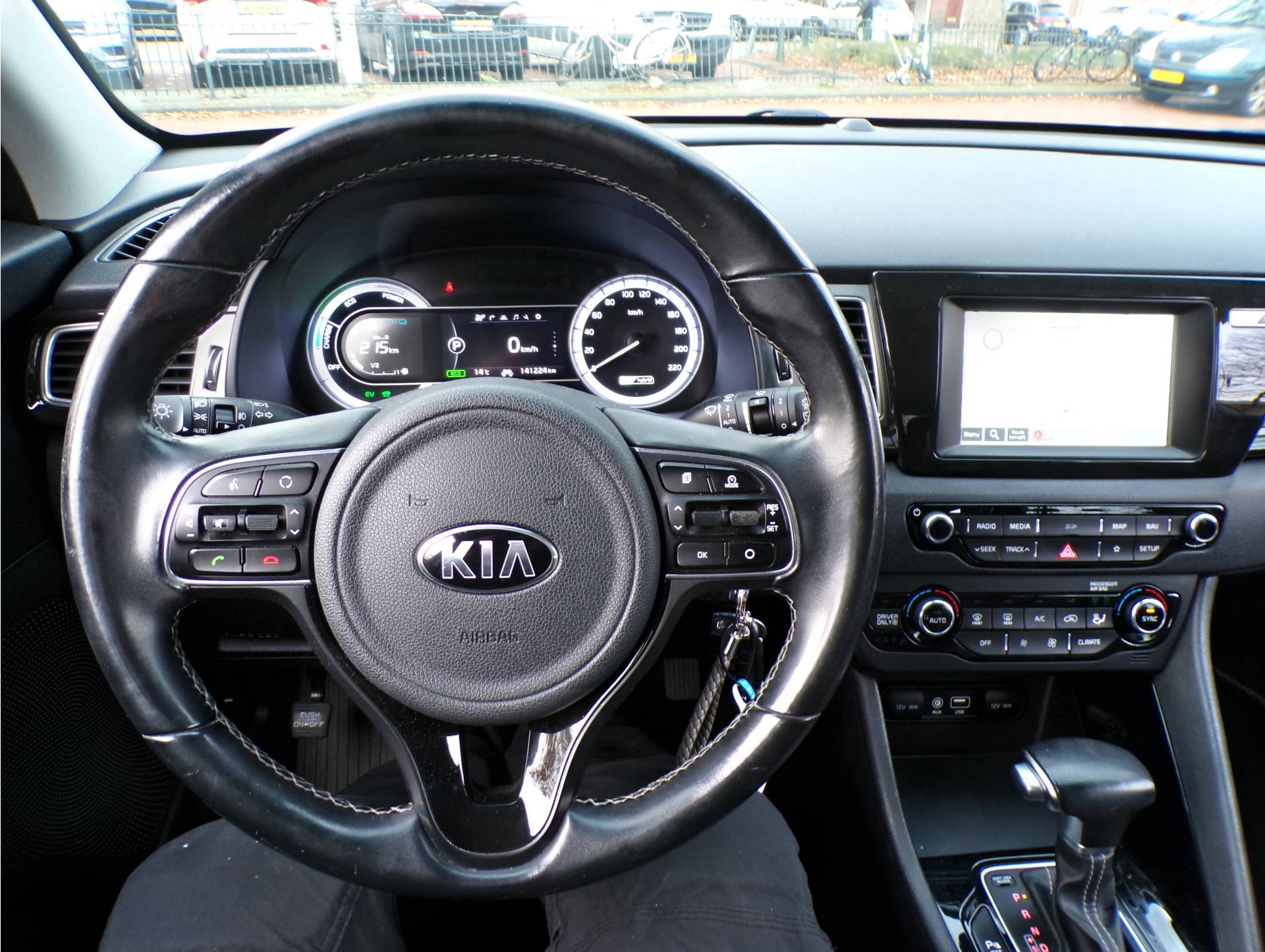 Overzichtelijk en veilig parkeren met de achteruitrijcamera. Overal en altijd. Als u regelmatig met een aanhanger of een fietsendrager op pad bent, is de afneembare trekhaak een praktische extra. In deze Niro vindt u schakelaars op het stuur om het full map navigatiesysteem te bedienen en het audiosysteem met DAB-ontvangst. De electronic climate control zorgt voor een prettige binnentemperatuur. In deze Kia kunt u zich concentreren op het verkeer, terwijl de auto de omgeving voor u in de gaten houdt. Een automatisch inschakelbare verlichting zorgt dat de verlichting aangaat als het donkerder wordt - in tunnels bijvoorbeeld - en de regensensor schakelt de ruitenwissers in als het nodig is. U hoeft er niets aan te doen. En dan is deze auto ook nog eens voorzien van cruise control, automatisch dimmende binnenspiegel, isofix-aansluiting, centrale deurvergrendeling met afstandsbediening en verstelbaar stuur.