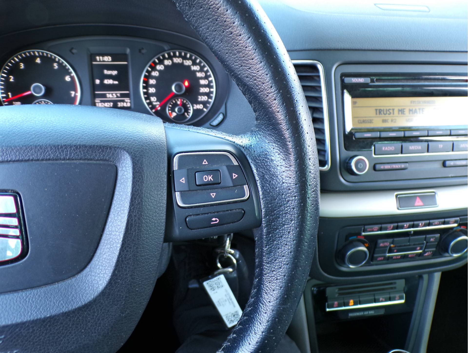 De auto is voorzien van een trekhaak en is een uitstekende caravantrekker. U verwacht natuurlijk automatische airconditioning in deze auto, en die is er dan ook. Even muten, een andere zender of track kiezen? Geen gerommel, het gaat moeiteloos met de audiobediening op het stuur. Een plekje vinden in de binnenstad is één, inparkeren is twee. Voor dat laatste heeft deze SEAT Alhambra prima parkeersensoren die u een handje helpen. De elektronische systemen in deze SEAT helpen u actief om comfortabeler te rijden. Een automatisch inschakelbare verlichting en een regensensor houden de omstandigheden onderweg in de gaten. De uitrusting van deze auto is met cruise control, buitentemperatuurmeter, automatisch dimmende binnenspiegel, lederen stuur, isofix-aansluiting en centrale deurvergrendeling met afstandsbediening behoorlijk compleet.
