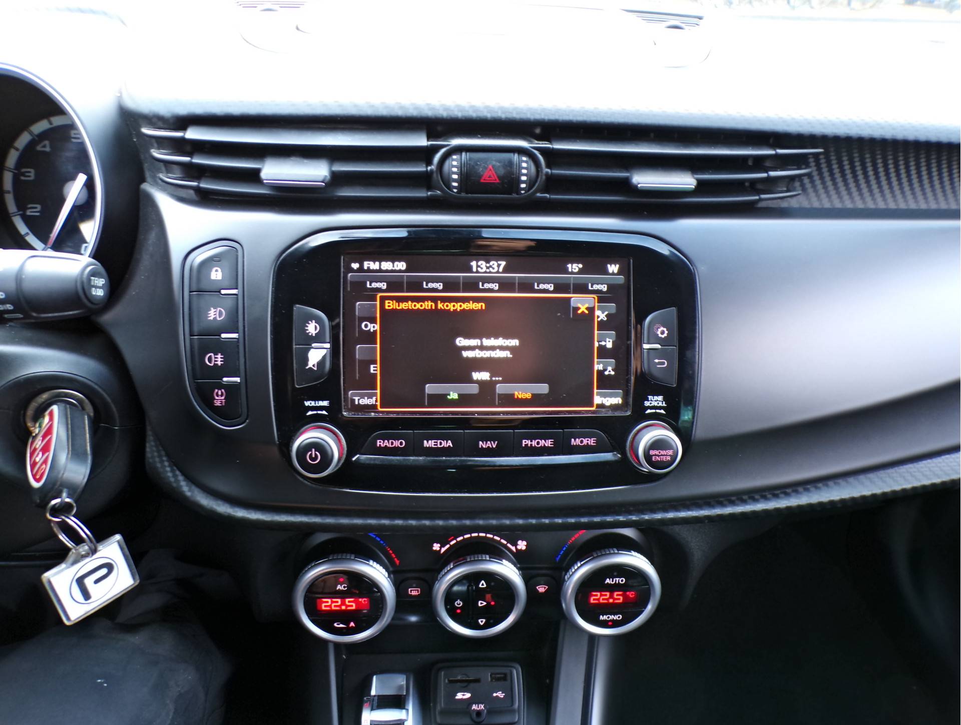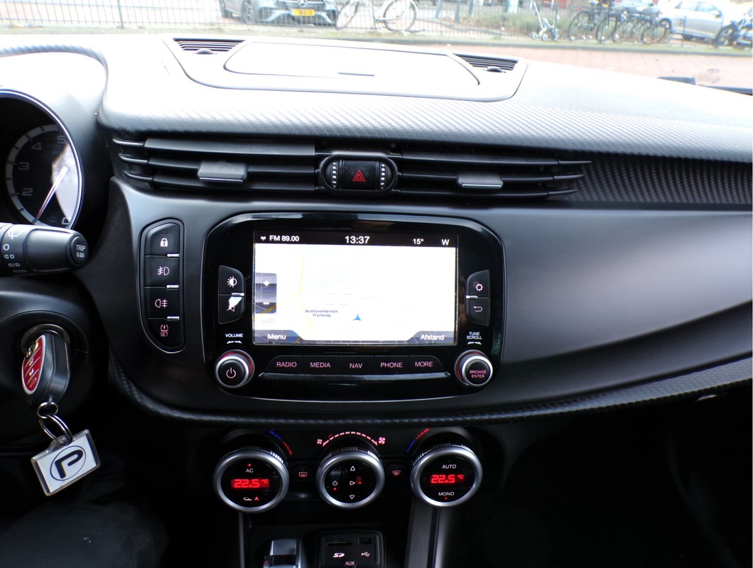 U bedient het full map navigatiesysteem en het audiosysteem via knoppen op het stuur. Zo kunt u steeds uw aandacht gericht houden op de weg. Automatische airconditioning regelt volautomatisch de temperatuur. U kiest de gewenste temperatuur en het systeem doet de rest. Hoeveel ruimte u nog heeft bij het insteken? De parkeersensoren laten het weten! Da's gemakkelijk! Op een rustige weg komt de cruise control helemaal tot z'n recht. Ook is de Alfa Romeo uitgerust met: lederen stuur, isofix-aansluiting, centrale deurvergrendeling met afstandsbediening en boordcomputer.