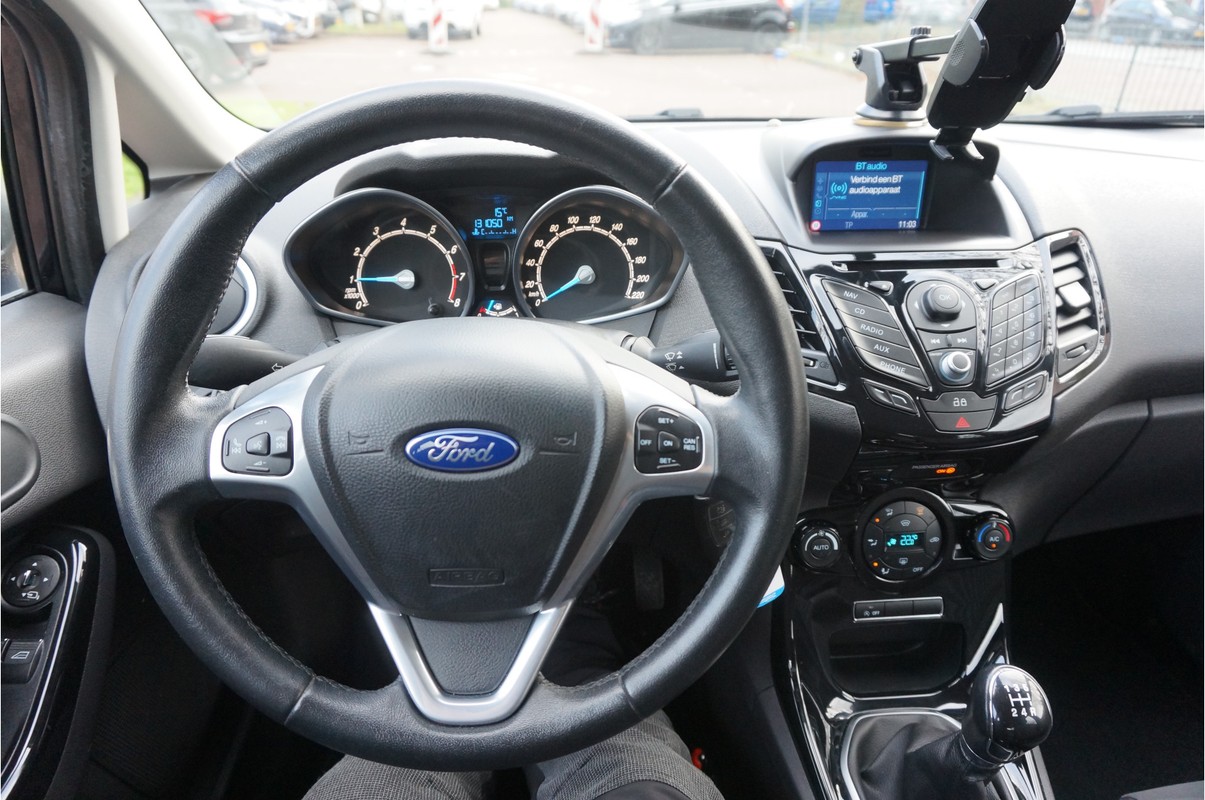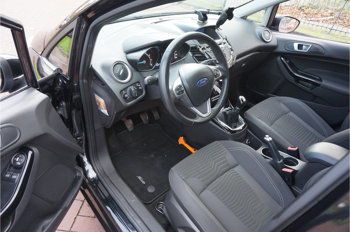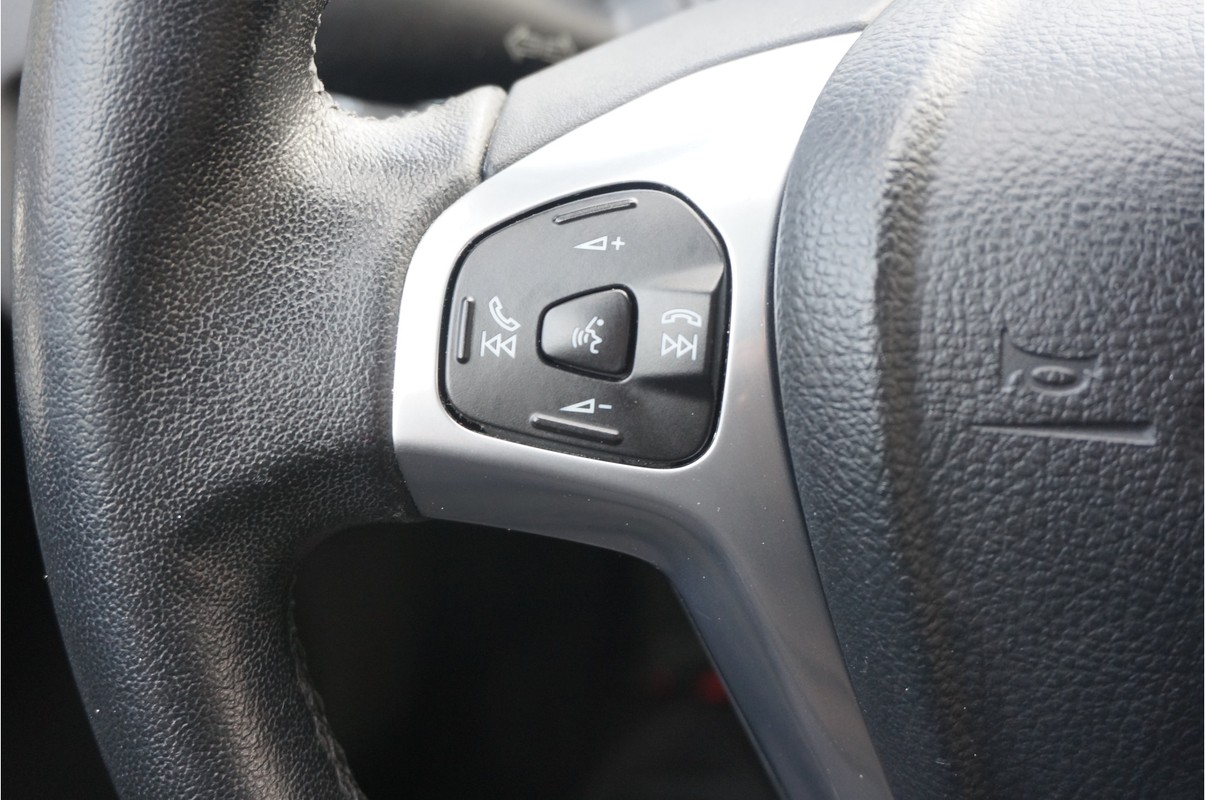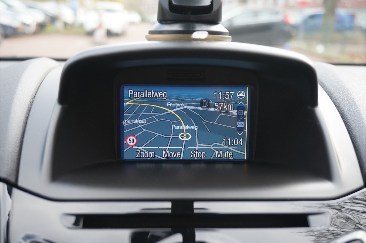 Wat wilt u onderweg horen? Er is volop keus, dankzij bluetooth. Het navigatiesysteem is met het audiosysteem gecombineerd. Of het buiten nu warm is of koud, dankzij automatische airconditioning is het binnen altijd behaaglijk. Een plekje vinden in de binnenstad is één, inparkeren is twee. Voor dat laatste heeft deze Ford Fiesta prima parkeersensoren die u een handje helpen. De elektronische systemen in deze Ford helpen u actief om comfortabeler te rijden. Een automatisch inschakelbare verlichting en een regensensor houden de omstandigheden onderweg in de gaten. Voor de lange ritten is de cruise control een verademing. De uitrusting van deze Ford is met automatisch dimmende binnenspiegel, lederen stuur, isofix-aansluiting, centrale deurvergrendeling met afstandsbediening en boordcomputer behoorlijk compleet.
