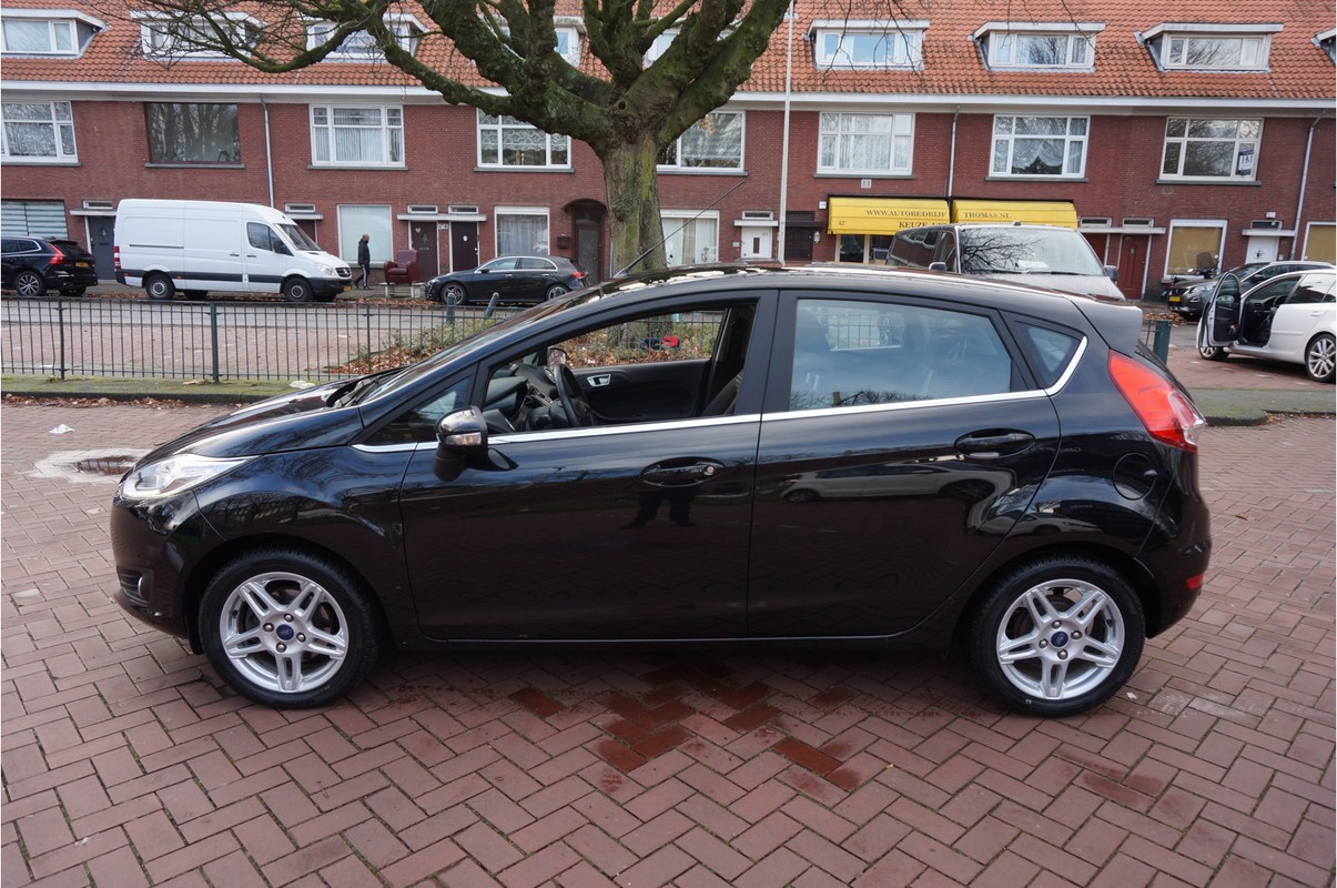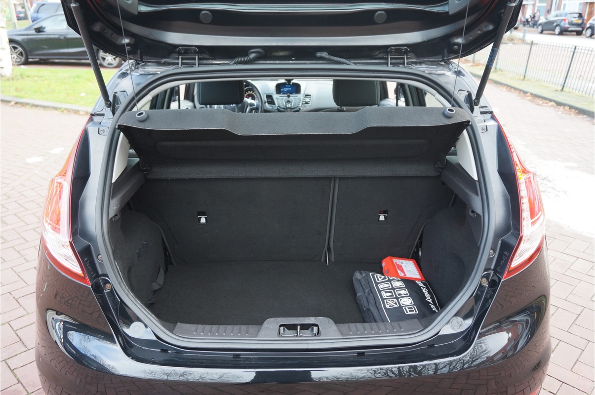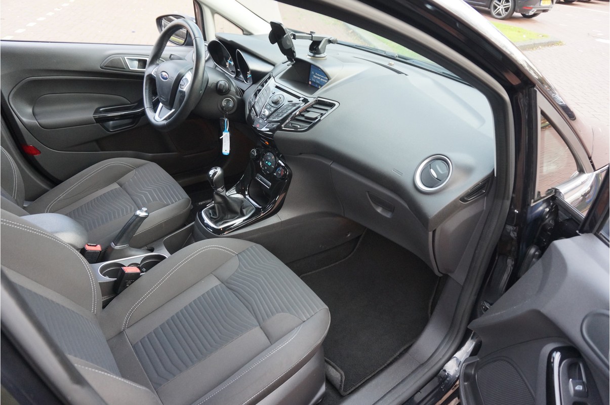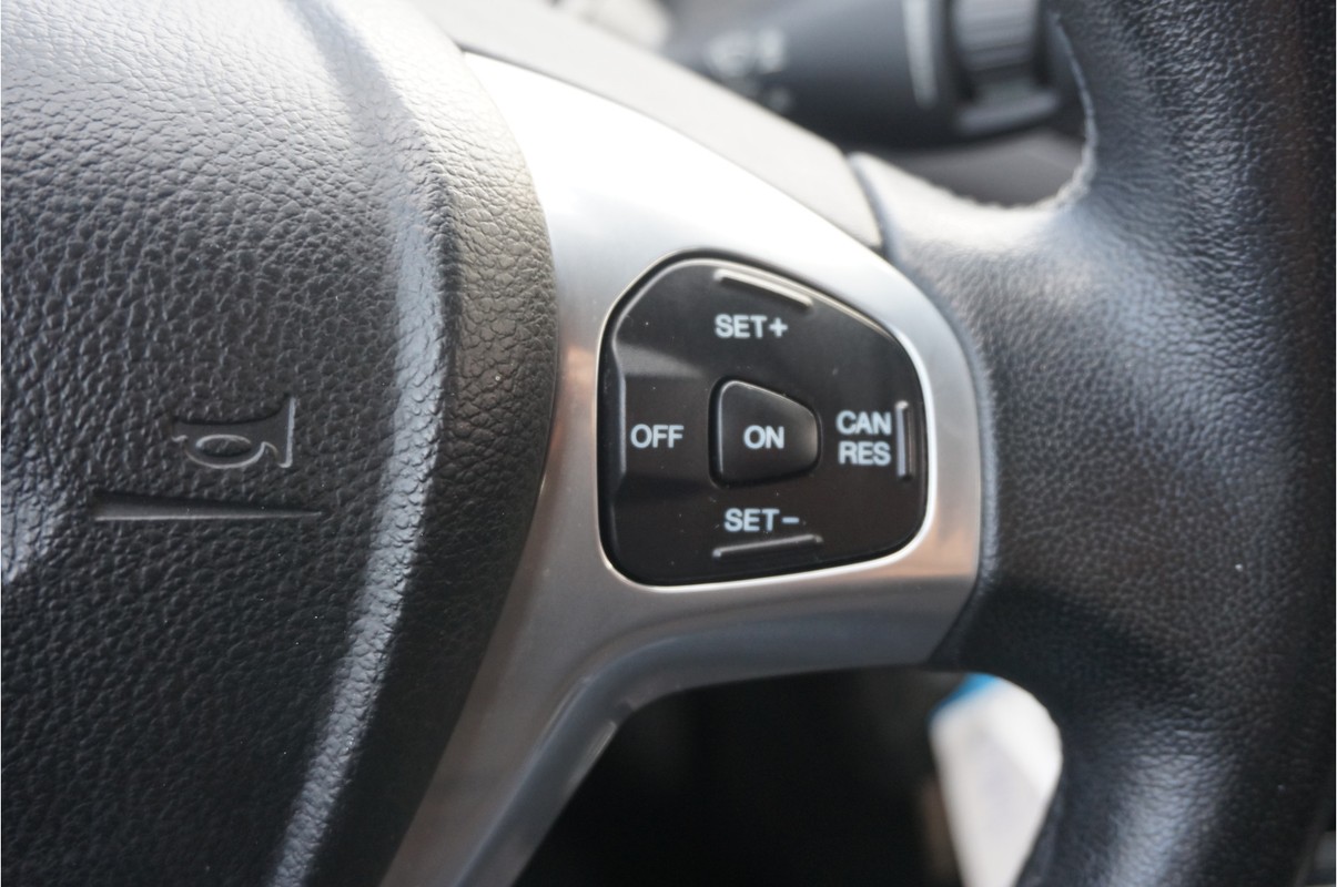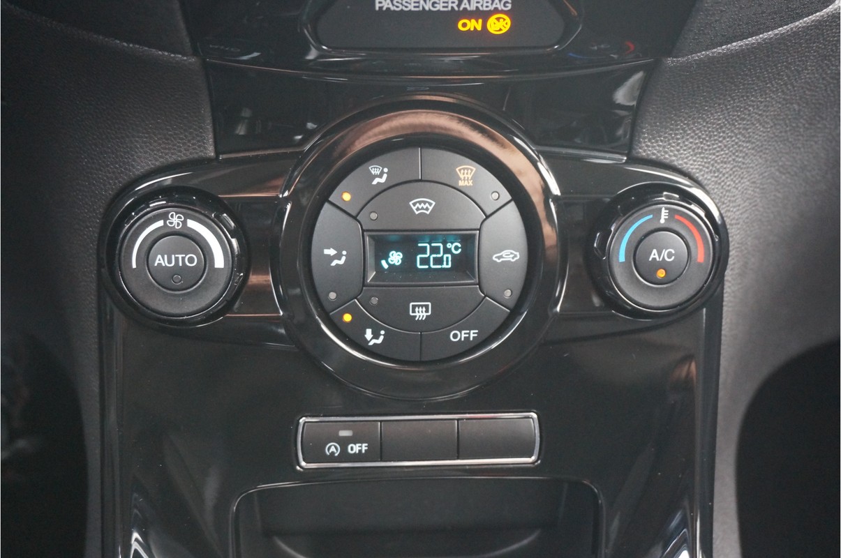 Wat wilt u onderweg horen? Er is volop keus, dankzij bluetooth. Het navigatiesysteem is met het audiosysteem gecombineerd. Of het buiten nu warm is of koud, dankzij automatische airconditioning is het binnen altijd behaaglijk. Een plekje vinden in de binnenstad is één, inparkeren is twee. Voor dat laatste heeft deze Ford Fiesta prima parkeersensoren die u een handje helpen. De elektronische systemen in deze Ford helpen u actief om comfortabeler te rijden. Een automatisch inschakelbare verlichting en een regensensor houden de omstandigheden onderweg in de gaten. Voor de lange ritten is de cruise control een verademing. De uitrusting van deze Ford is met automatisch dimmende binnenspiegel, lederen stuur, isofix-aansluiting, centrale deurvergrendeling met afstandsbediening en boordcomputer behoorlijk compleet.