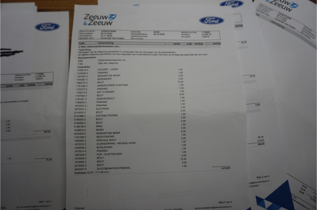 DISTRIBUTIERIEM IS RECENT VERVANGEN BIJ 130*** KM BIJ DE FORD DEALER ZIE BIJBEHOREND FACTUUR......