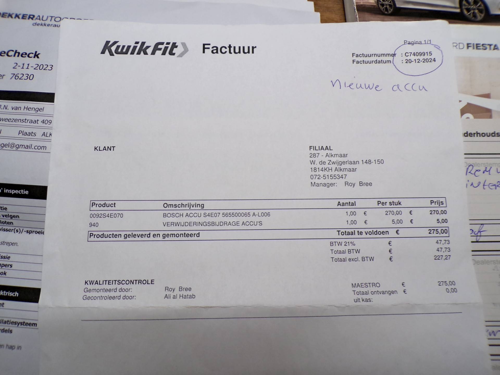 Alle auto’s zijn bijna allemaal voorzien van een Nationale Auto pas (NAP) teller rapport
