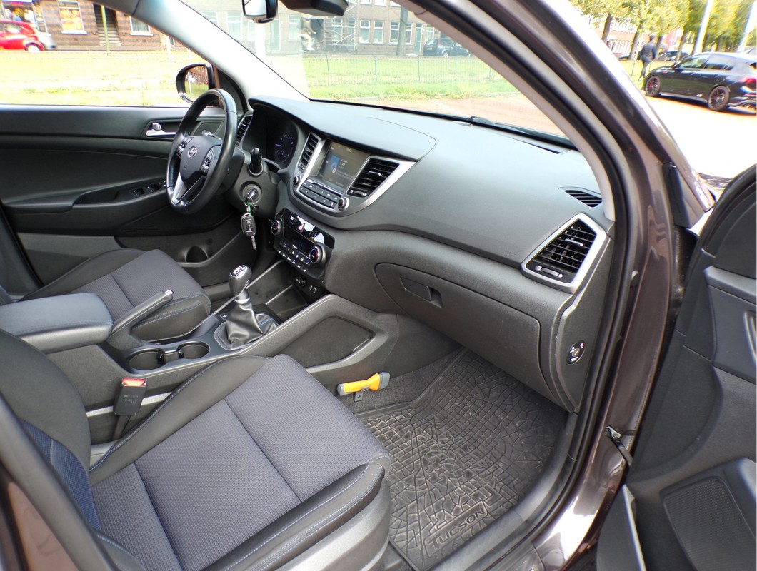 Zoals u mag verwachten van deze Hyundai Tucson is hij uitgerust met een reeks aan actieve veiligheidssystemen. Het Lane-keeping systeem registreert permanent of u binnen de lijnen van de rijstrook blijft; dwaalt u onbedoeld af, dan waarschuwt het systeem en corrigeert de koers. Een kortere remweg verkleint de kans op een aanrijding. Brake assist helpt actief mee tijdens een noodstop. In deze Hyundai vinden we verder een hill hold functie en bandenspanningcontrolesysteem.