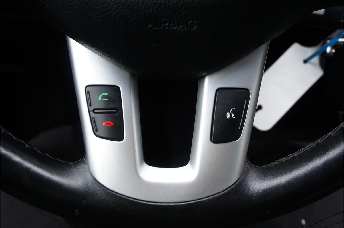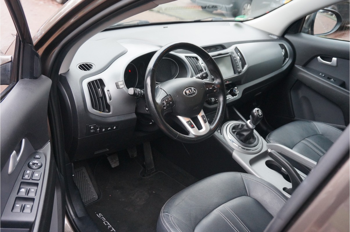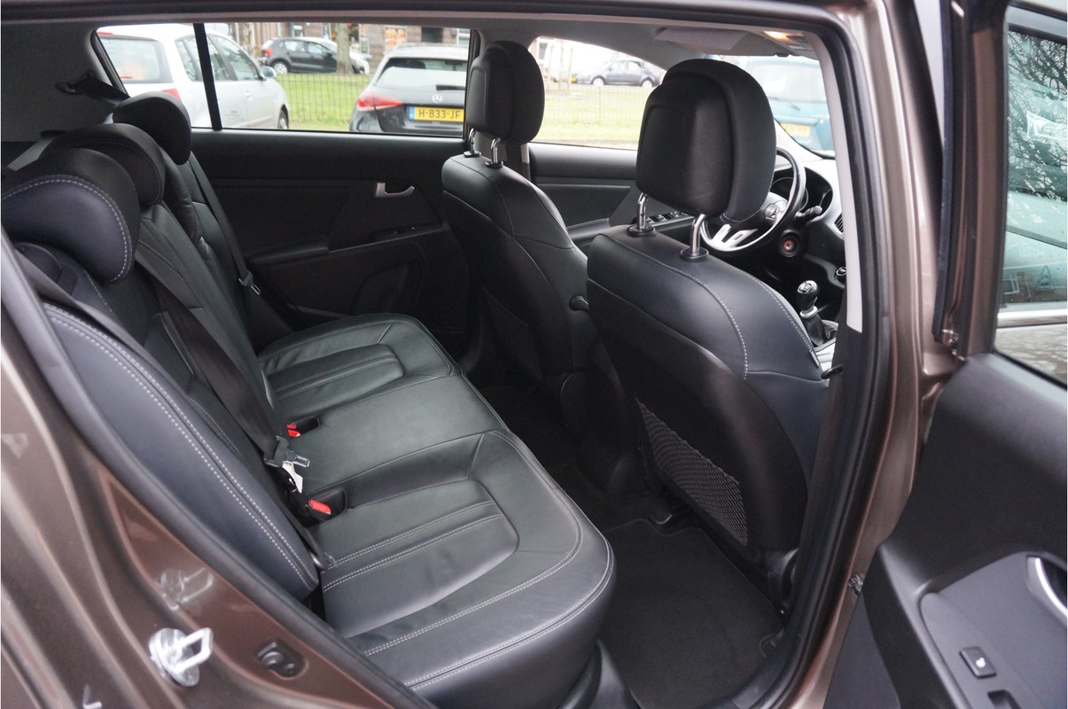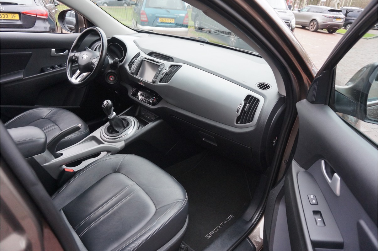 Alle technologie in de Kia Sportage is er op gericht om uw rit veilig en gemakkelijk te laten verlopen. Met zijn benzinemotor en handgeschakelde zesversnellingsbak is dit een prima auto voor nog vele kilometers. Als we het over extra cachet hebben, moeten we zeker het lederen interieur noemen. Bij de complete uitrusting van deze auto hoort ook stoelverwarming. Deze Kia Sportage heeft een verwarmd stuurwiel. Nooit meer koude handen onderweg. Bij de uitrusting van deze auto horen onder meer 17 inch lichtmetalen velgen, LED-dagrijverlichting, aluminium dakrailing, donker getint glas achter, verstelbare lendensteunen en elektrisch bediende ramen.