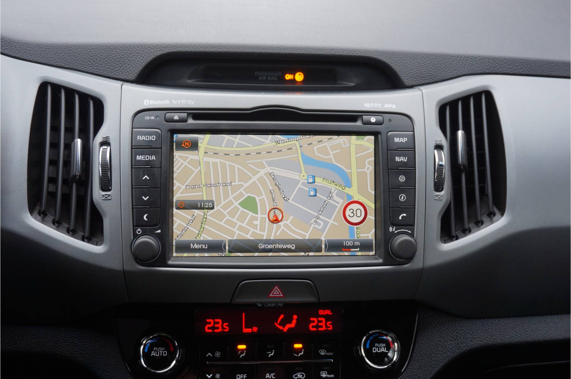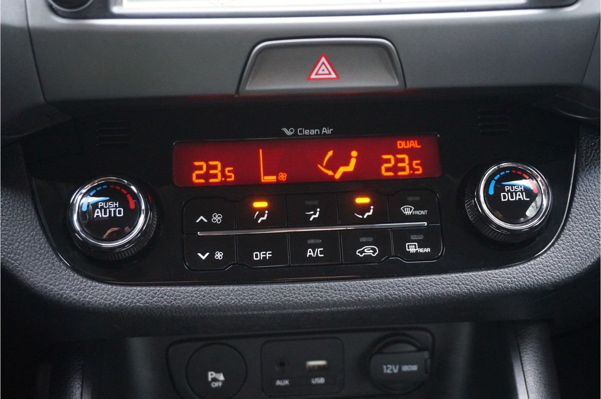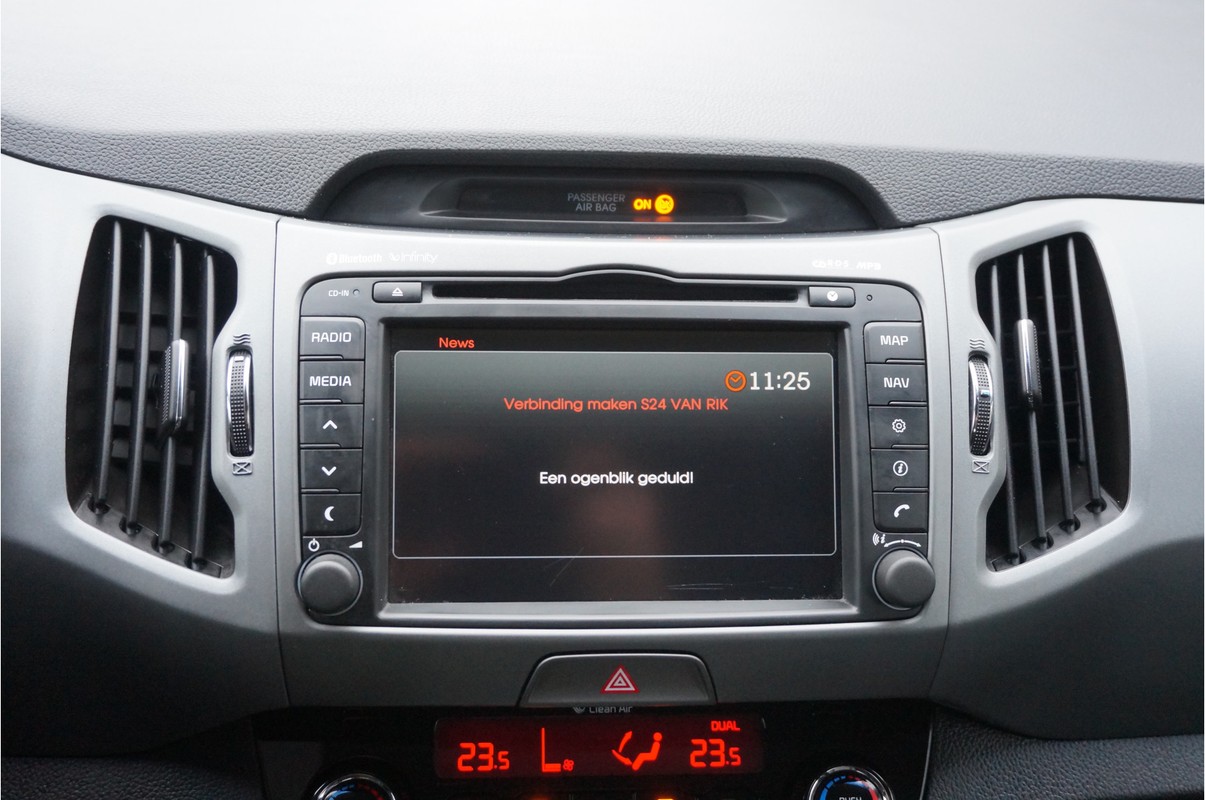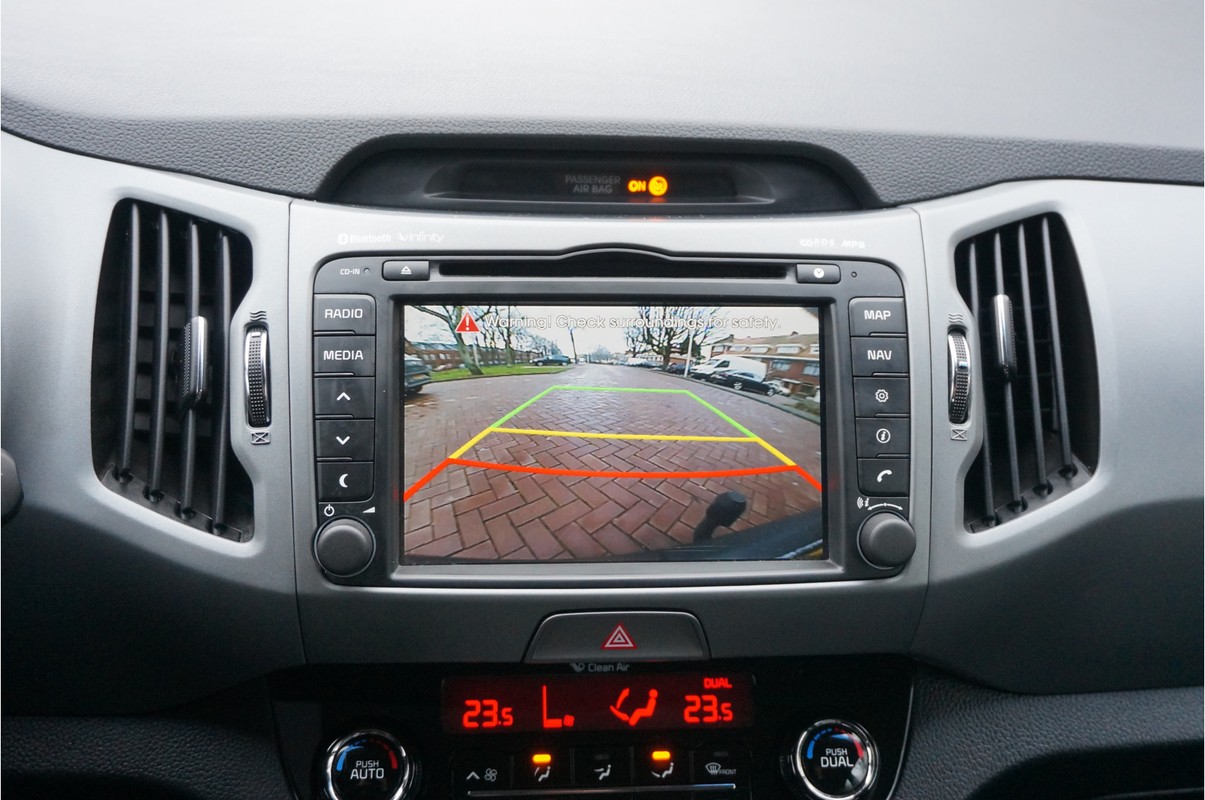 Alle technologie in de Kia Sportage is er op gericht om uw rit veilig en gemakkelijk te laten verlopen. Met zijn benzinemotor en handgeschakelde zesversnellingsbak is dit een prima auto voor nog vele kilometers. Als we het over extra cachet hebben, moeten we zeker het lederen interieur noemen. Bij de complete uitrusting van deze auto hoort ook stoelverwarming. Deze Kia Sportage heeft een verwarmd stuurwiel. Nooit meer koude handen onderweg. Bij de uitrusting van deze auto horen onder meer 17 inch lichtmetalen velgen, LED-dagrijverlichting, aluminium dakrailing, donker getint glas achter, verstelbare lendensteunen en elektrisch bediende ramen.