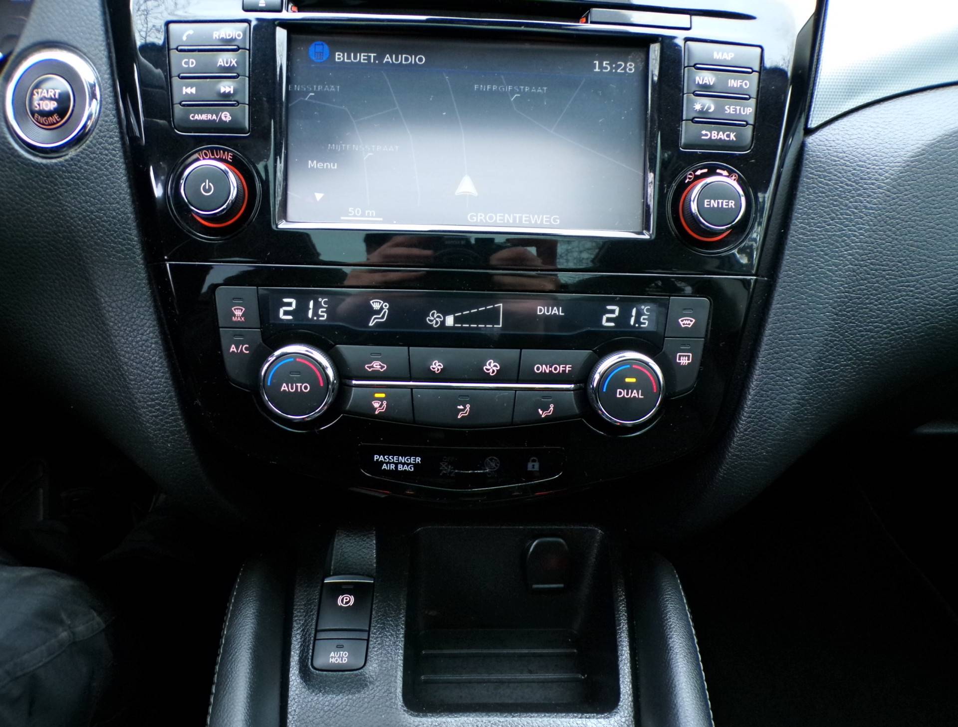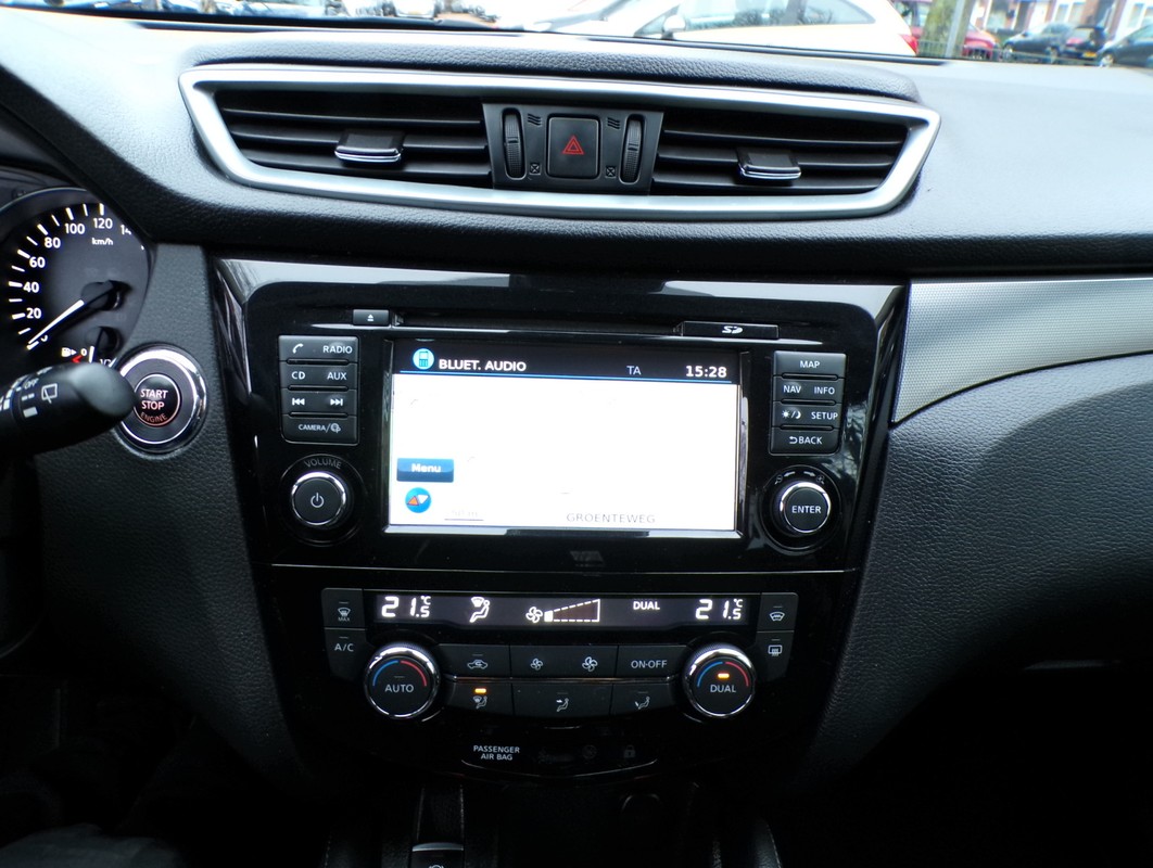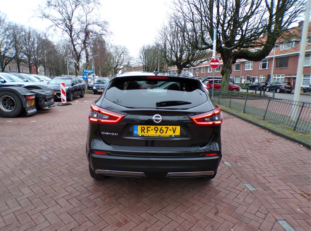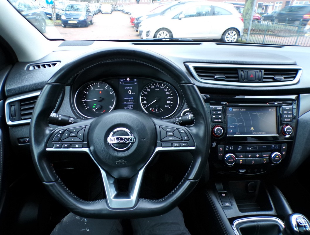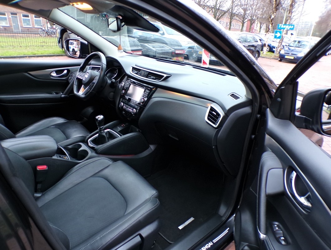 De 360 graden camera op deze auto biedt u een volledig, panoramisch zicht op de omgeving. Uw smartphone wordt een dashboard, met alle functies in beeld. Dankzij Connected Services en de speciale app. In een auto als deze kunt u niet zonder automatische airconditioning, zodat de temperatuur altijd goed is. Parkeerplekken worden er niet ruimer op. Maar met de aanwezige parkeersensoren krijgt u deze Nissan Qashqai zonder problemen op z'n plaats. Natuurlijk is een complete auto als deze ook voorzien van sensoren die de omgeving in de gaten houden. Deze Nissan heeft niet alleen een automatisch inschakelbare verlichting aan boord, maar ook een regensensor. Met navigatiesysteem, DAB ontvangst, cruise control, keyless entry, automatisch dimmende binnenspiegel en lederen stuur is deze Nissan helemaal compleet.