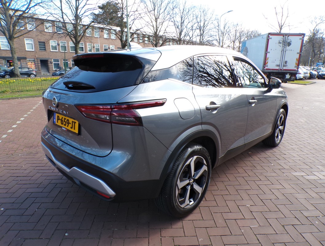 U zoekt een betrouwbare auto met uitstekende rijkwaliteiten? Dan is deze Nissan Qashqai een geweldige keuze! Deze SUV is uitgerust met een benzinemotor en een handgeschakelde zesversnellingsbak. Houdt u van een stijlvolle uitvoering? Dan zal het lederen interieur u zeker bevallen. Met het grote glazen panoramadak voelt het alsof u in een cabrio zit. De slimme koplampen gebruiken de allernieuwste matrix LED-verlichting. Altijd maximaal zicht, nooit verblinding bij de tegenligger. Verder is de Nissan uitgerust met: 18 inch lichtmetalen velgen, aluminium dakrailing, elektrisch inklapbare buitenspiegels, in hoogte verstelbare passagiersstoel, donker getint glas achter en in delen neerklapbare achterbank.