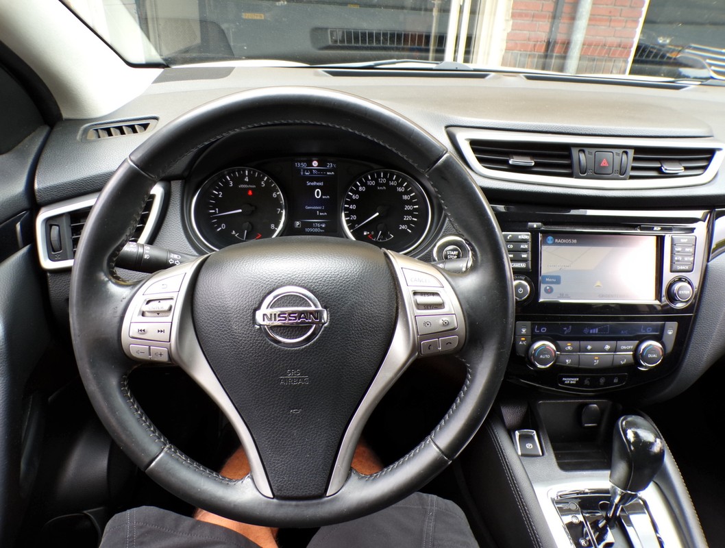 De vormgeving van deze Nissan Qashqai is stijlvol maar ingetogen en dat maakt meteen duidelijk dat u van deze auto pure kwaliteit mag verwachten. De aandrijving komt voor rekening van een benzinemotor en een automatische transmissie. Geniet van het uitzicht naar buiten door het riante glazen panoramadak. In deze Nissan profiteert u onder andere ook van: 18 inch lichtmetalen velgen, LED-dagrijverlichting, donker getint glas achter en in delen neerklapbare achterbank.