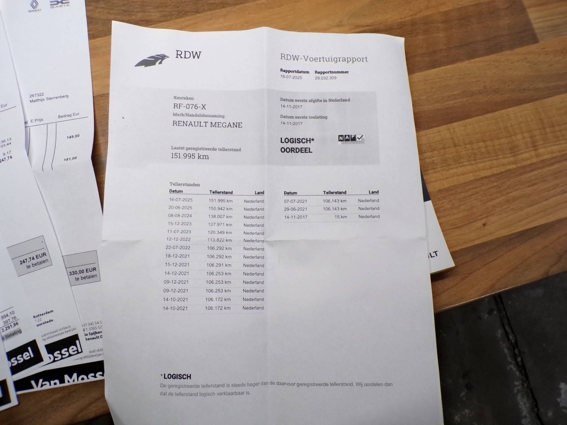 Alle auto’s zijn bijna allemaal voorzien van een Nationale Auto pas (NAP) teller rapport