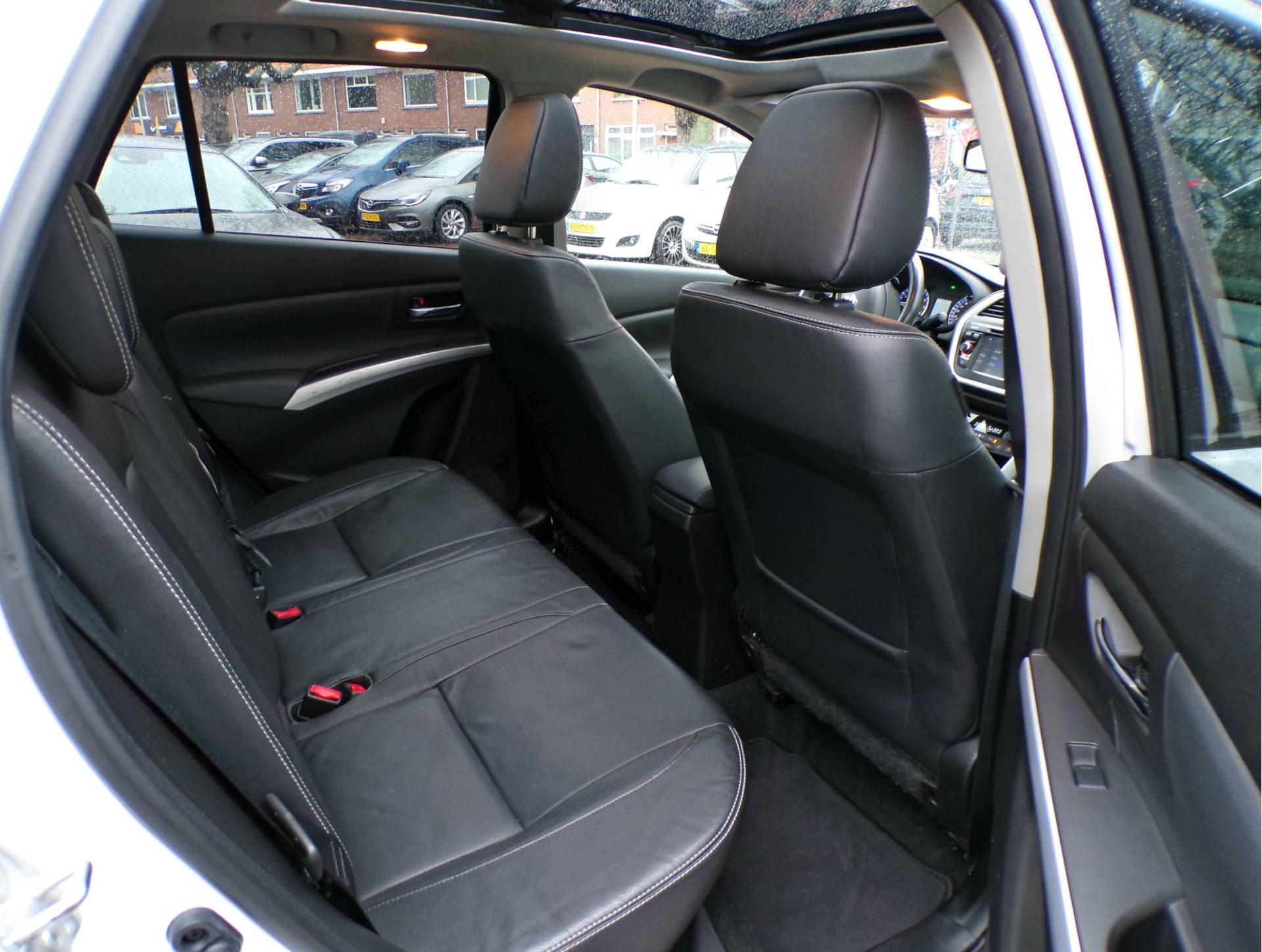 Hij zorgt voor een ontspannen rijervaring, deze Suzuki SX4 S-Cross. Het is een auto uit 2016, op de teller staat een kilometerstand van 123208. Met zijn benzinemotor en automatische transmissie is dit een prima auto voor nog vele kilometers. Een woon-werkritje wordt een minivakantie in deze auto met z'n elektrisch bediende glazen panorama dak en het heerlijk zachte lederen interieur. Er is stoelverwarming aanwezig in deze auto. Dankzij de xenonverlichting profiteert u in het donker van een krachtige en heldere lichtbundel. Bij de uitrusting van deze Suzuki horen onder meer 17 inch lichtmetalen velgen, donker getint glas achter en in delen neerklapbare achterbank.
