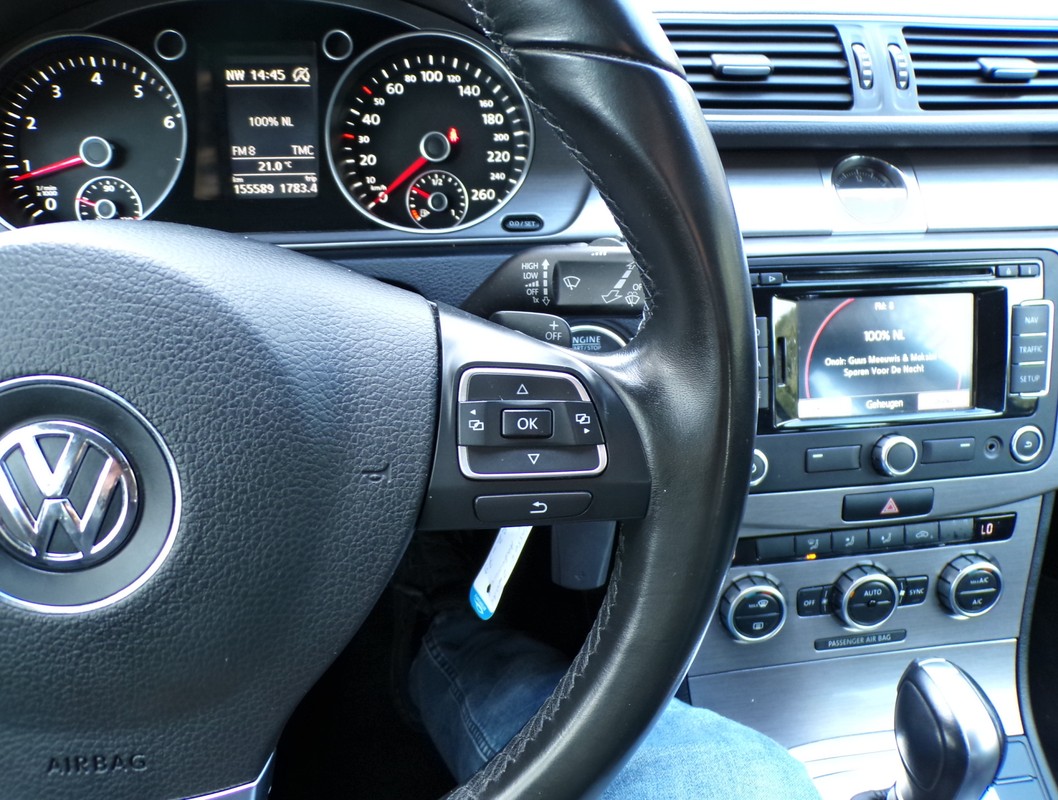 U rijdt snel, zuinig en zeker naar uw bestemming met het navigatiesysteem. Ook is de auto voorzien van automatische airconditioning. Audio-aanpassingen doen zonder de weg uit het oog te verliezen? Daar zorgt de audiobediening op het stuur voor! Parkeerplekken worden er niet ruimer op. Maar met de aanwezige parkeersensoren krijgt u deze Volkswagen Passat Variant zonder problemen op z'n plaats. Achter het stuur van deze Volkswagen bent u niet alleen. De auto kijkt als het ware met u mee tijdens de rit. De regensensor schakelt de ruitenwissers in als het nodig is en de automatisch inschakelbare verlichting doet de lichten voor u aan. Ook schakelpaddles aan het stuur, cruise control, buitentemperatuurmeter, automatisch dimmende buitenspiegels, isofix-aansluiting en centrale deurvergrendeling met afstandsbediening horen tot de voorzieningen op deze auto.